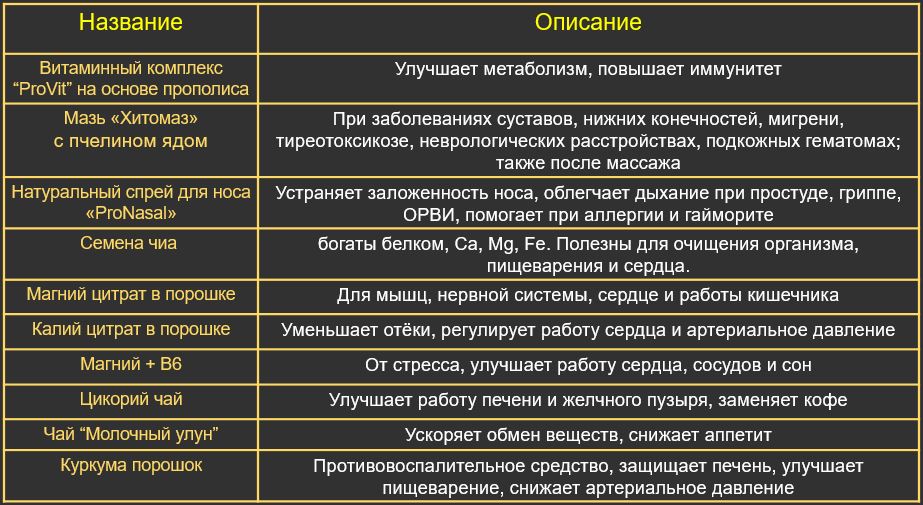 Каждый участник может выбрать 1 из 5 натуральных лечебных продуктов в подарок: