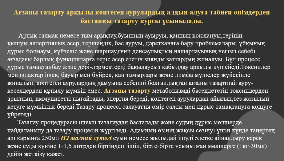 • Ағзаны тазарту, емделу курстарынан курстарынан түсетін түсімдер.